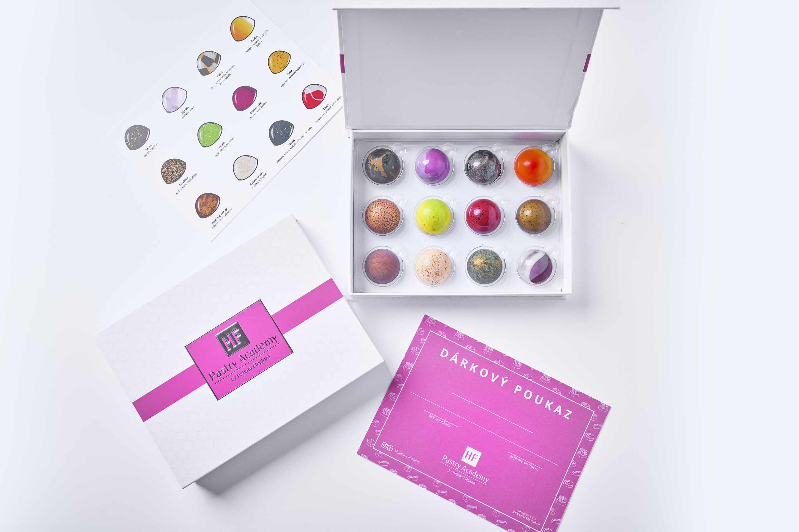 Dárkový poukaz, který můžete uplatnit na kurzy i produkty z naší nabídky pro vás rádi vytiskneme a zašleme zabalený v krásné dárkové krabičce i spolu s dárkovým balením našich 12 originálních pralinek. Stačí nám napsat, na jakou částku má být poukaz vystaven (min. 1000 Kč) a zda chcete i věnování.