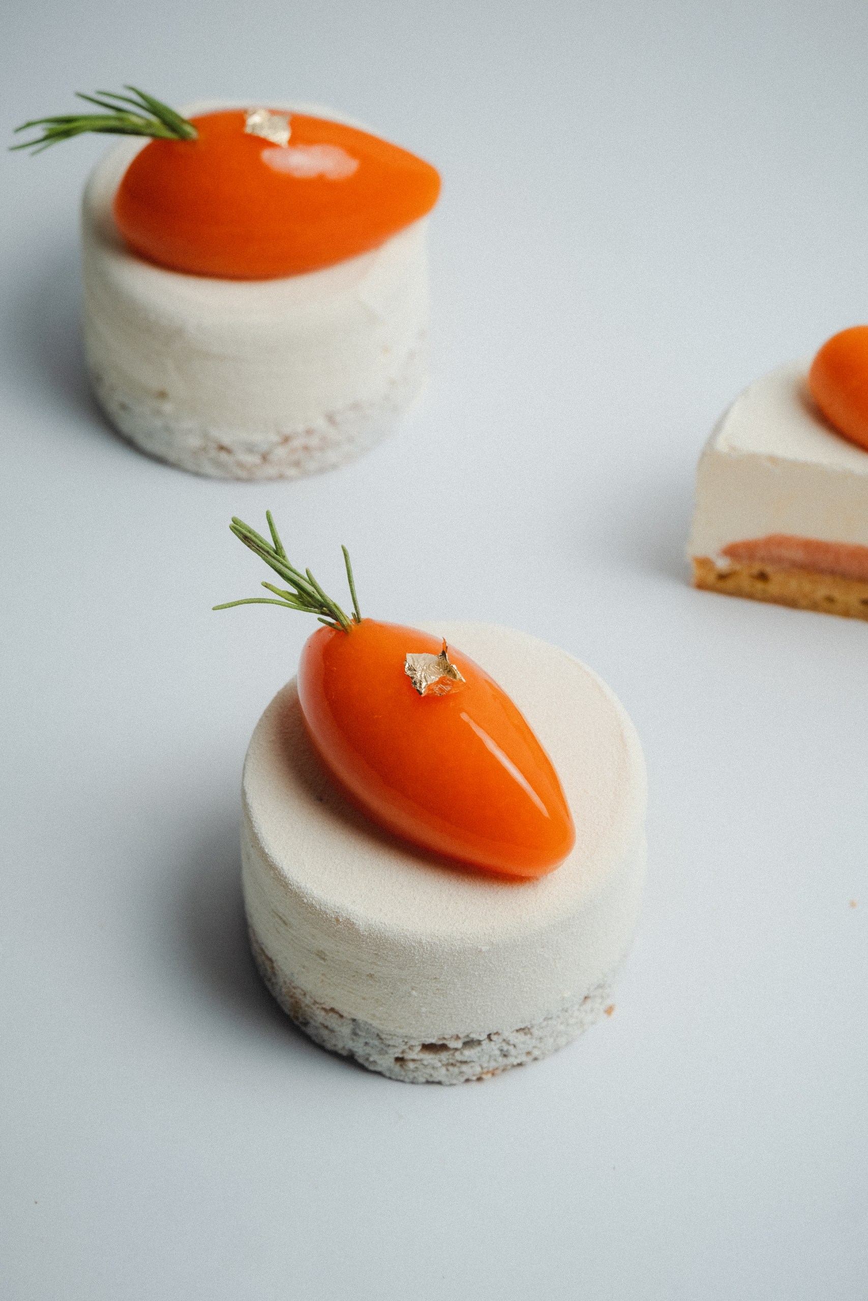 • Mrkvový a quinoa piškot s pomerančo-mrkvovým želé, vanilkový cheesecake-typu mousse